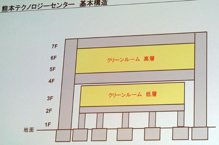↑ソニー熊本テクノロジーセンターの建屋の基本構造図で、高層階に後工程ラインが、低層階に前工程ラインが入っていたとのこと