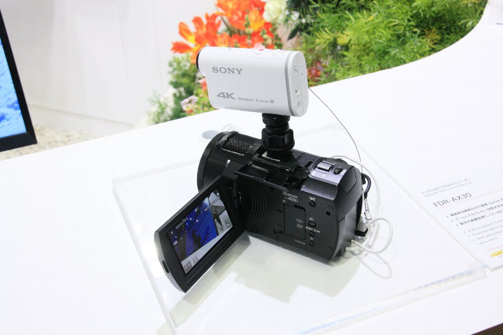 ↑ 「この展示の仕方もおもしろいな」と思いスマホでパチリ。国内では王者GoProの上を行く売り上げらしい、ソニーアクションカムの新製品X1000V