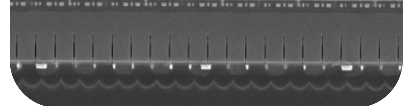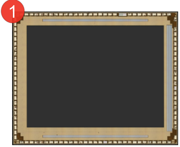 ↑この写真の向きで言うと、上下と右端に3列くらい並んでいる様に見えるシルバーの様な色のところが恐らくTSV(シリコン貫通Via)箇所