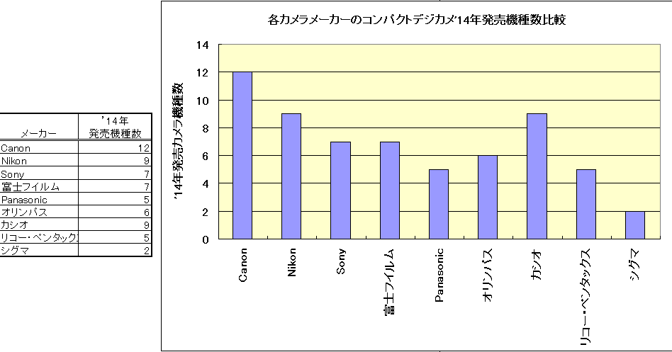 1) コンパクトデジカメより発売機種数が少ない ←これは厳しい比較相手(^^;)