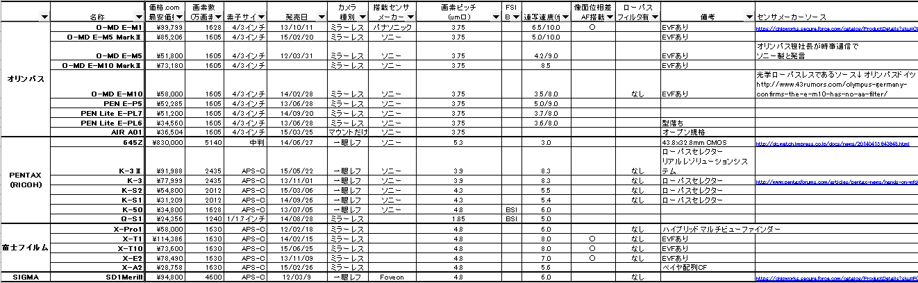 >ペンタックスのDSLR販売はキヤノンとニコンから比べると圧倒的に小さな規模ですが、ミラーレス市場の約14%相当でパナソニックを上回ります。単独企業としては難しいのかもしれませんが、一部門としては利益が出せる規模なのでしょうね。