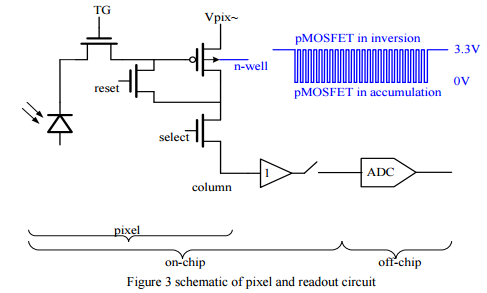 その他にも、画素数が増える≒画素ソースフォロワの数がその分増える 際に、画素ソースフォロワのバックゲート=ウェル電位を10μSecの時間で3.3Vスイングさせるというのも(可能だとは思いますが)何か気持ち悪いというか、無理がきそうな感じがしますし、