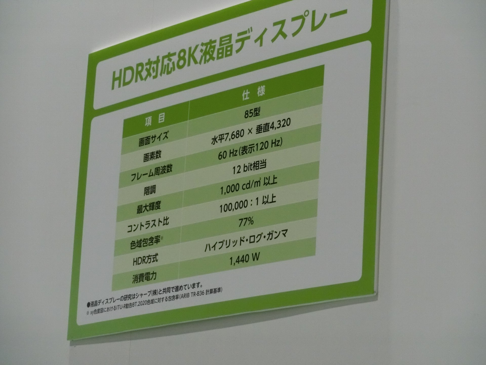 ↑上記は、昨年くらいから展示してある、シャープ製HDR対応85インチ液晶TVの大まかなスペック表なのですが、