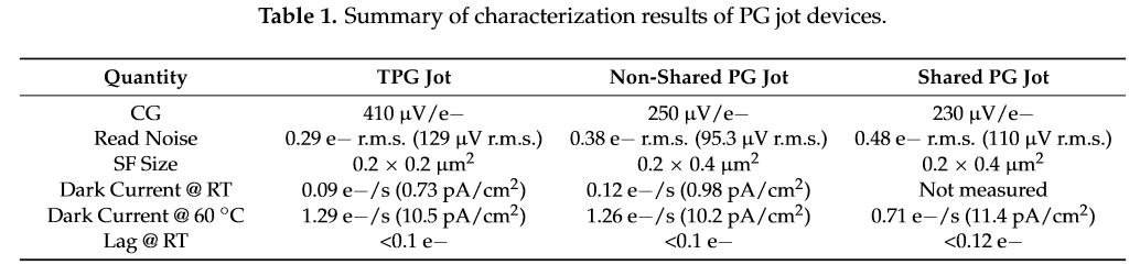 (c) shared PG jot で読み出しノイズが0.42e-rmsであったjot