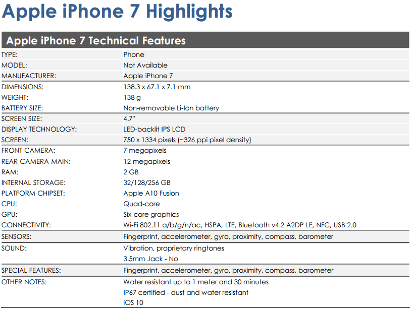 ↑一応、iPhone7の技術的特徴のシートをまず記録として