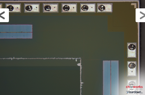 ↑iSightカメラ搭載素子のチップ隅の(恐らく)顕微鏡写真