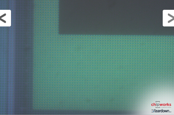↑FaceTime(=サブ=フロント)カメラ搭載撮像素子の画素領域隅の(恐らく)顕微鏡写真