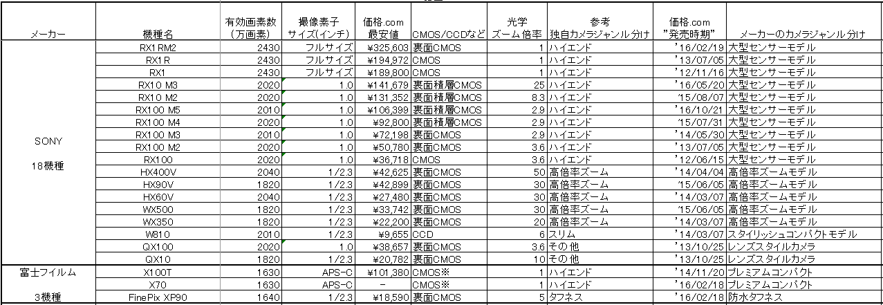 (以前にも書きましたが、皆さんご存知の様に)RX1、RX10、RX100のそれぞれのシリーズが新機種が発売されても並売しつづけられている結果です。