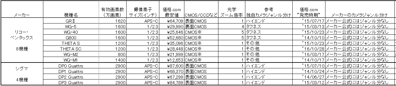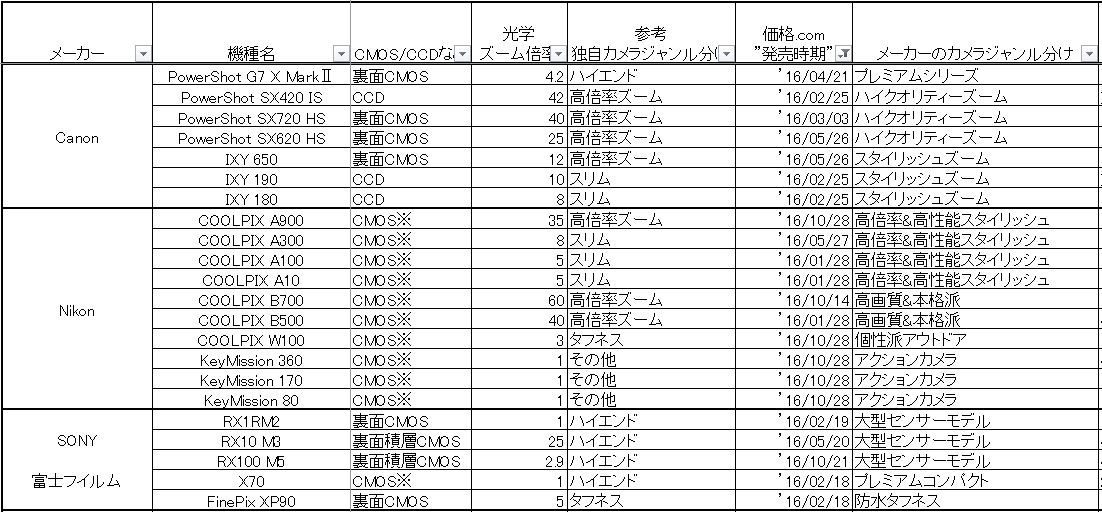 キヤノン、ニコン、ソニーのカメラ3大メーカーから中位のカメラメーカーに目を移すと、'16年はかなり特徴がはっきりしてきます。
