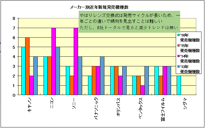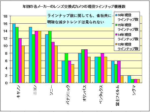 おしなべていずれのメーカーもカメラ機種数を絞ろうという様な明確なトレンドは無さそうな感じです。