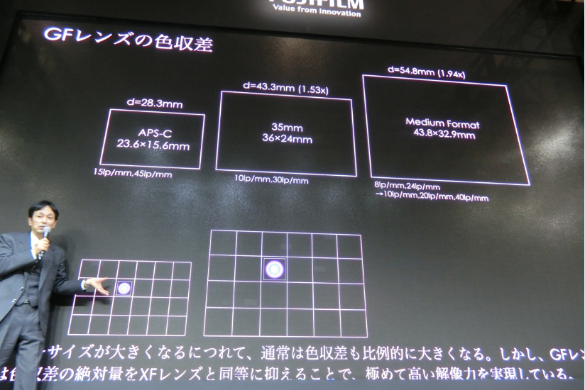 通常、撮像フォーマットが大きくなればその分色収差も大きくなる(≒大きくなったところで、最終出力の実力としては同等となる)