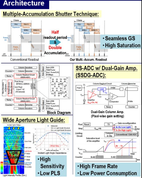 上のプレゼン資料の一番下の、過去発表センサとのスペック比較表は、次週以降のエントリに詳細は譲るとして、