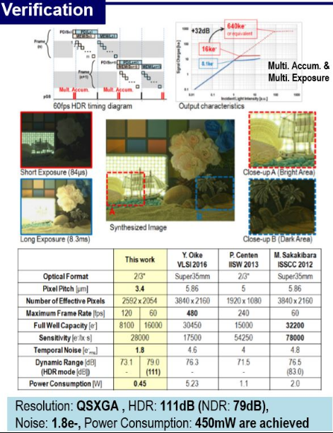 今回のISSCC発表の方は、(後のスペック表に出てきますが、)3.4um□画素ピッチ&約5Mpix画素数センサということで、