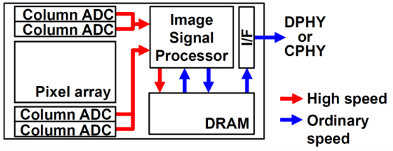 ・画素とDRAMとrow driver以外の残りの回路ブロックは、全てbottomのISPダイに載せられている