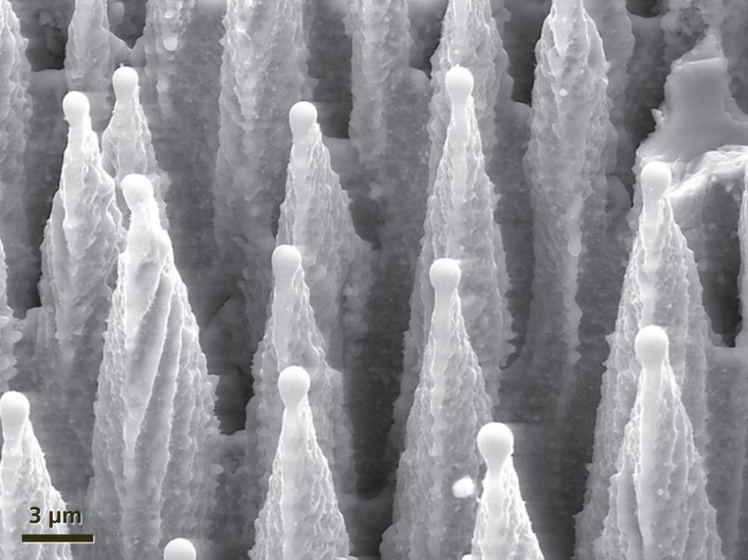ただブラックシリコンの表面は無秩序にトゲトゲしている↓