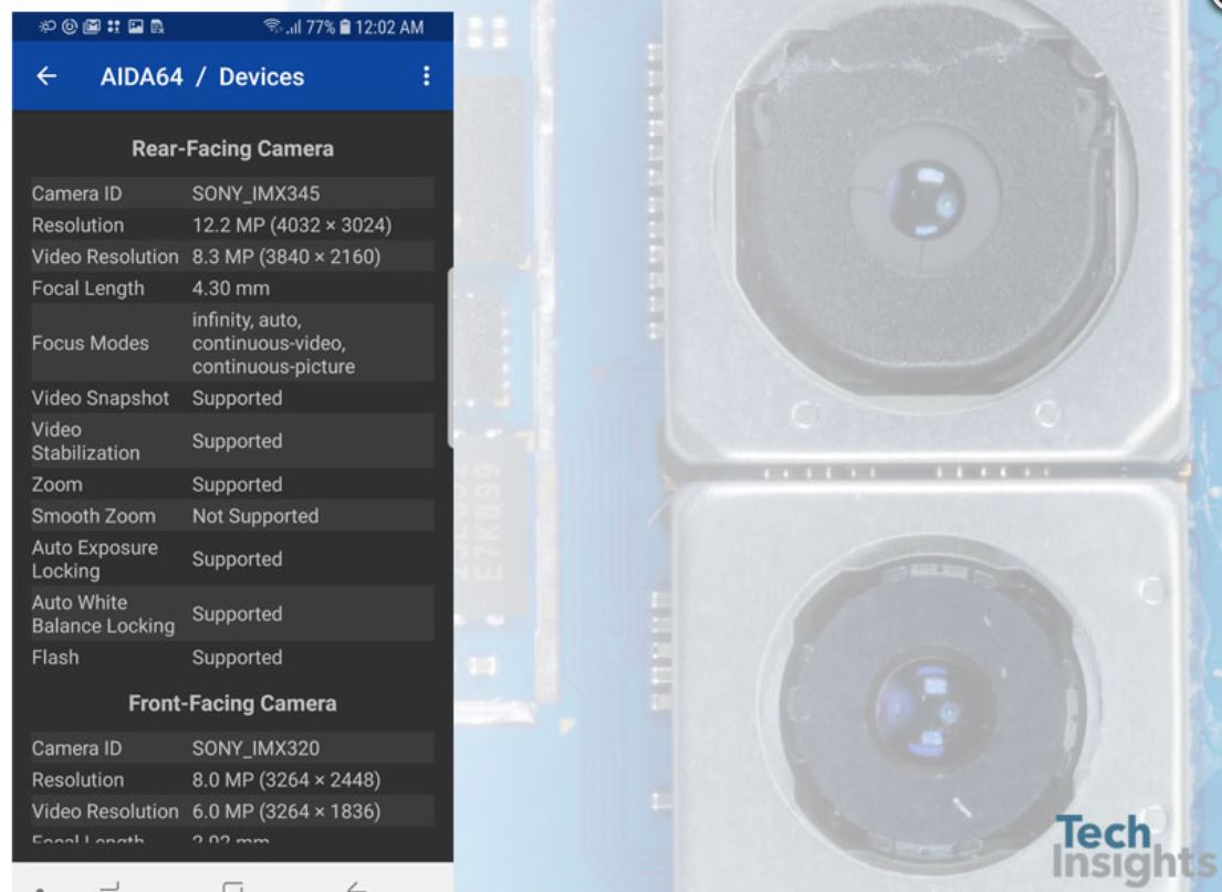 GalaxyS8からの流用 = GalaxyS8搭載素子と同じ