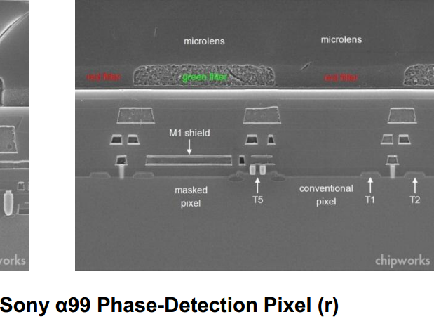 ⑥Aptinaの位相差検出画素は1行緑画素だが、ソニーα99の方は同様に1行全てgreenなのか?それともベイヤ配列のまま、飛び飛びでgreen画素のみ位相差検出画素なのか?←文面と写真からでは私にはどちらか判別つかず
