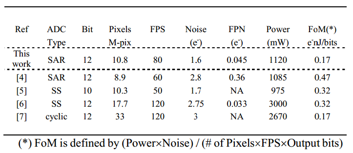 ※どうも一番右端列の”FoM”という値は、画素数とフレームレートと出力bit数と消費電力とノイズを絡ませた指数の様です。