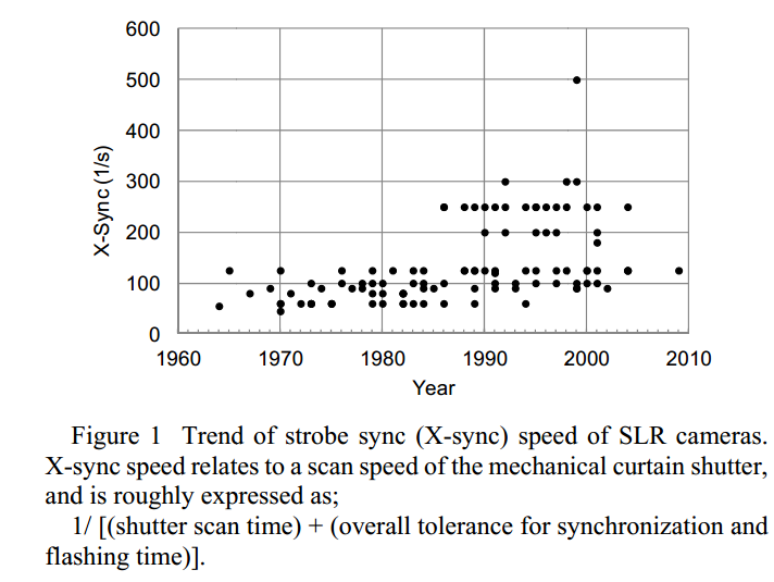概略の理解としてはストロボ(フラッシュ)の同調速度の最短のシャッタースピードを縦軸にプロットしたようなものだと思われます。
