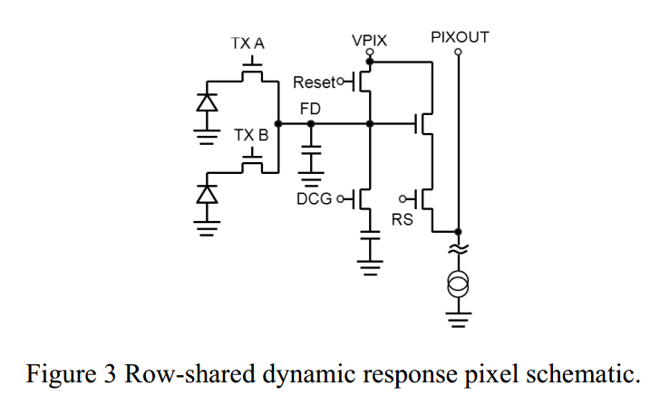 以前本blogで取り挙げた”Dual Conversion Gain”(←上記回路図のDCGのスイッチとその下の容量の使い方)についても、本発表資料では触れられています。