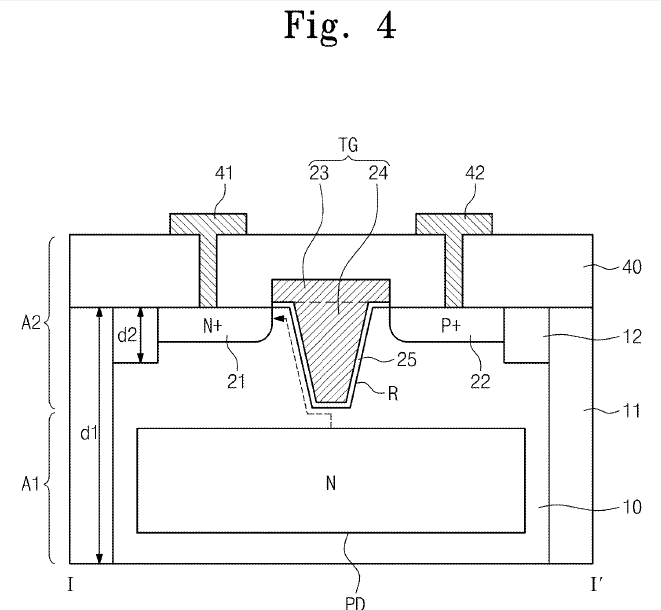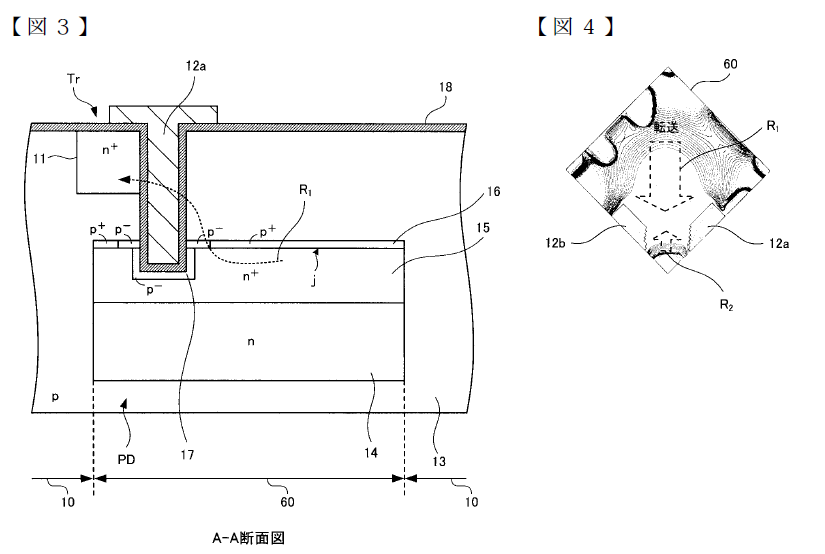 上のソニーの図面でFD部は”4”なのですが、"6"の縦型転送ゲートと明示的に(?)、離れて形成されている図になっています。