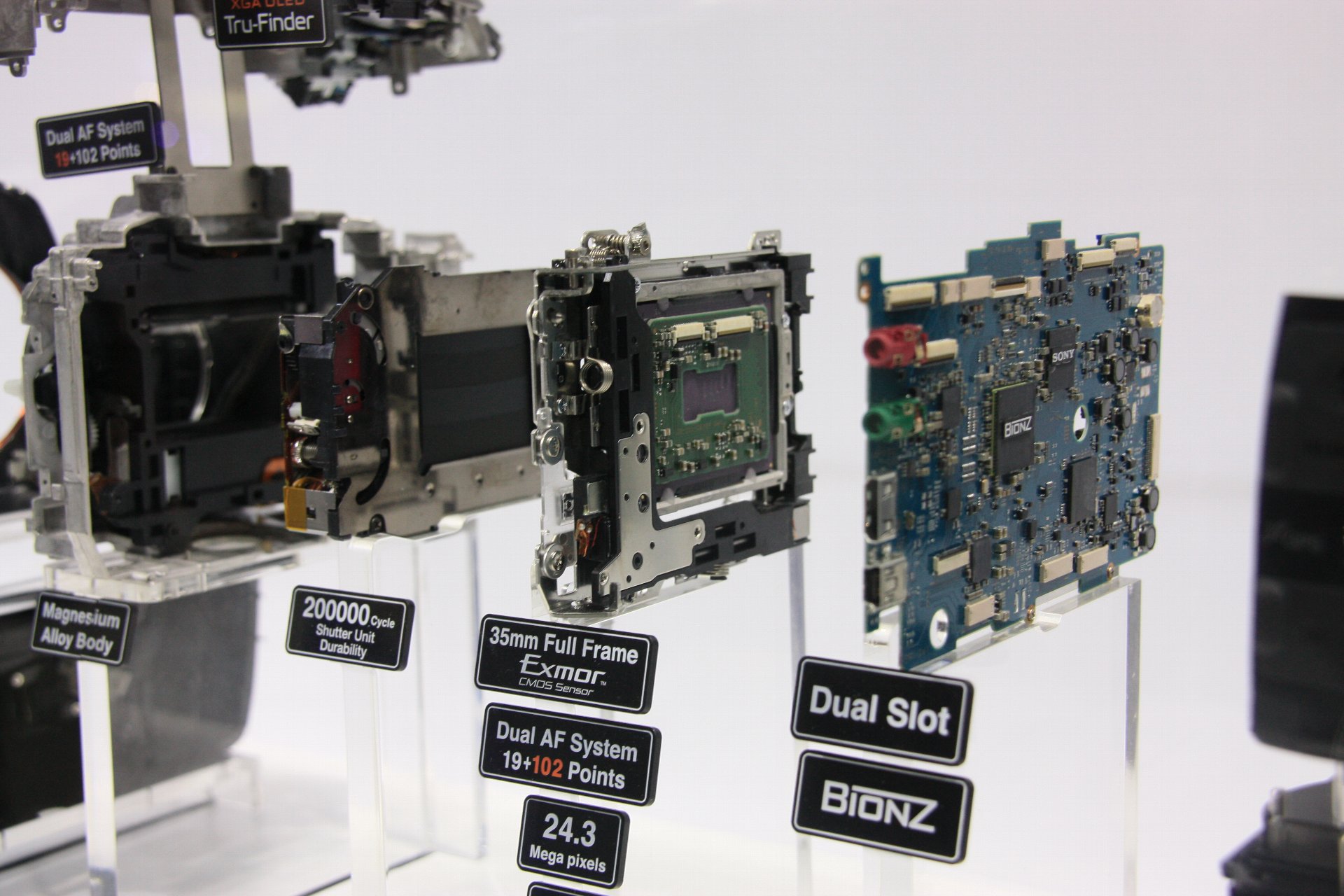 ↑ '13年CEATECにおける、ソニーα99分解モデル写真