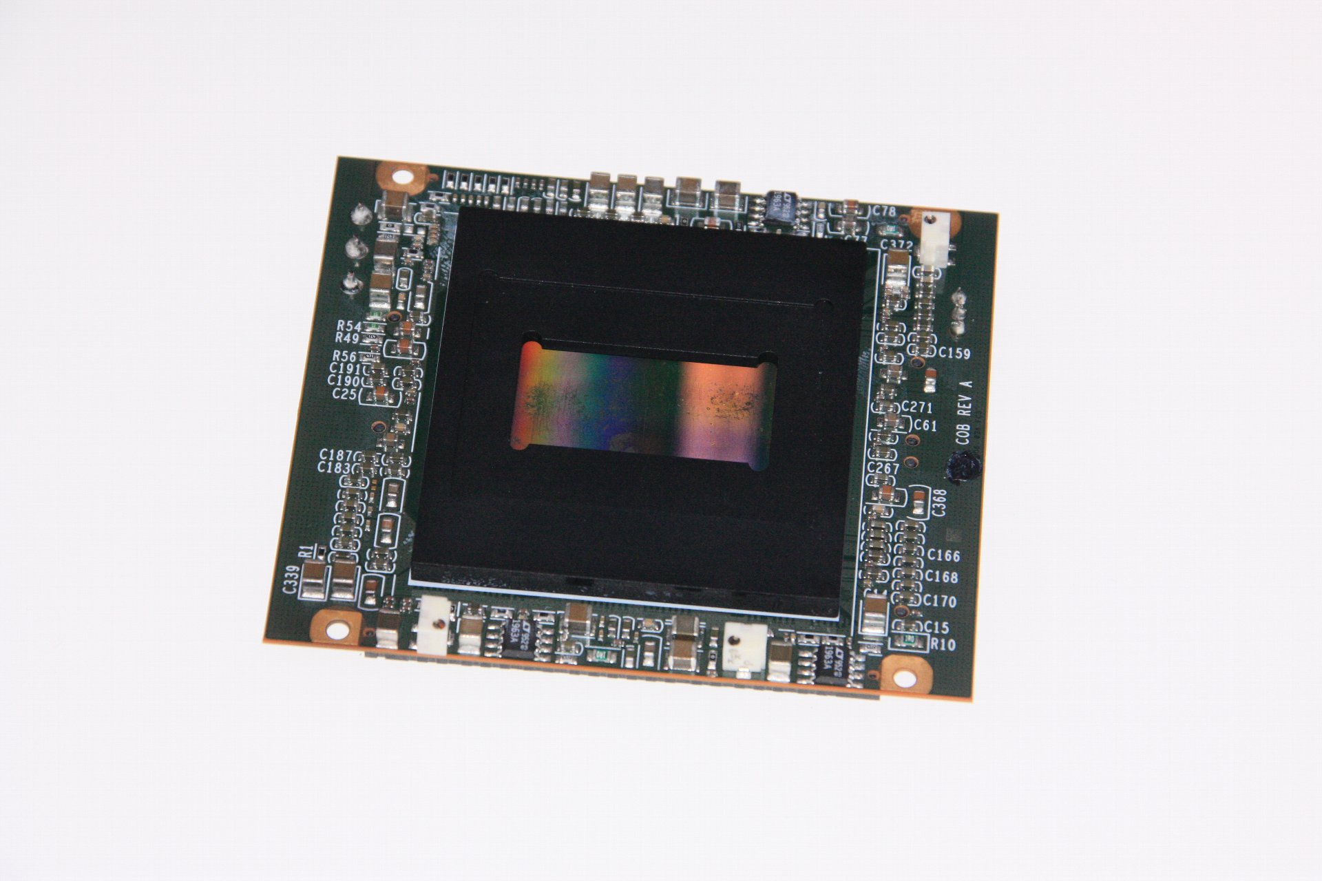 ↑ NAB2012 RED(レッドデジタルシネマカンパニー)社のブースに展示してあったDragonセンサ概観 (表)