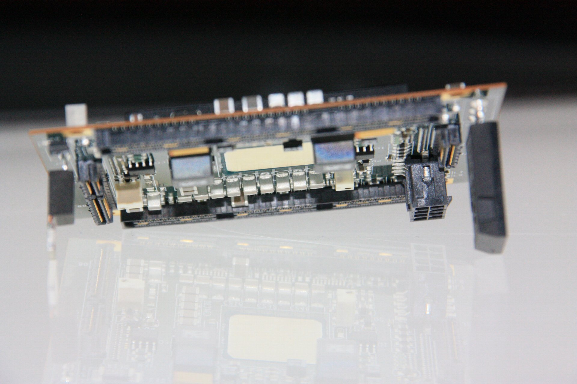 冒頭二枚の写真は、厳密にはセンサ単体ではなく、センサ基板に実装された状態での展示になっています。