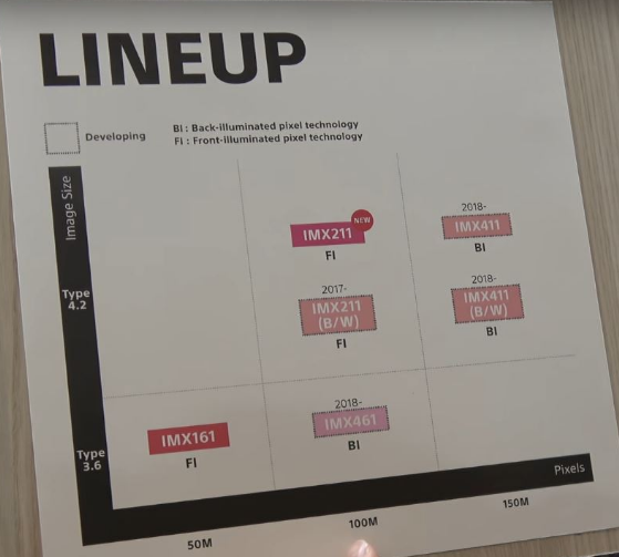 ↑左は(恐らく)3.6インチ 1億画素、右は(恐らく)4.2インチ 1.5億画素 表面照射型センサ