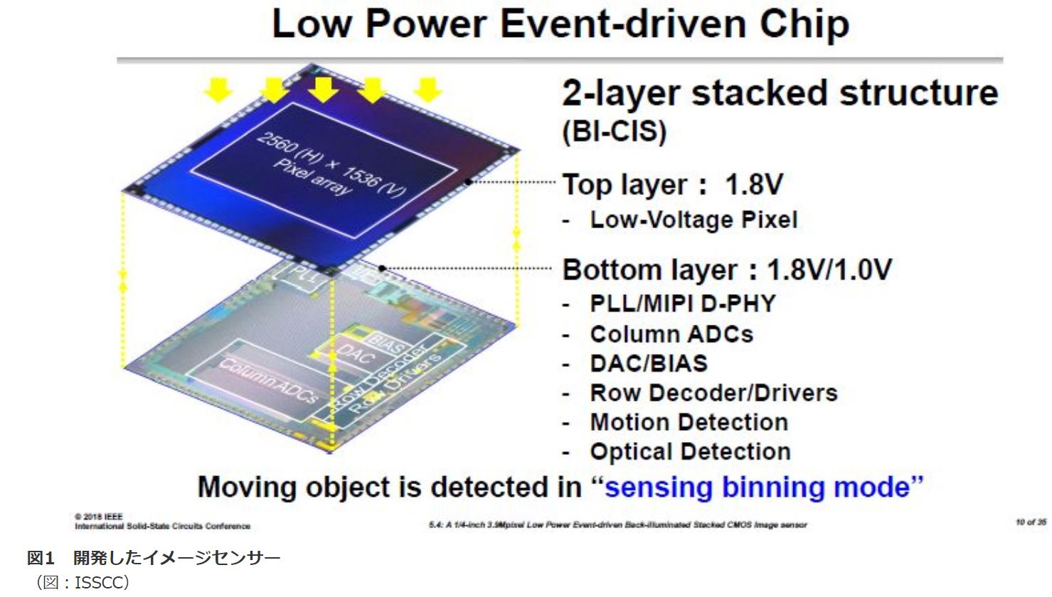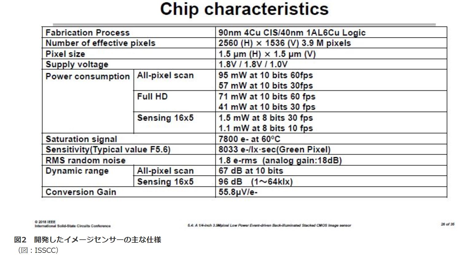 ↑冒頭の日経記事のリンク先より 注釈を見ると、ISSCCのソニーの発表資料ままの様子